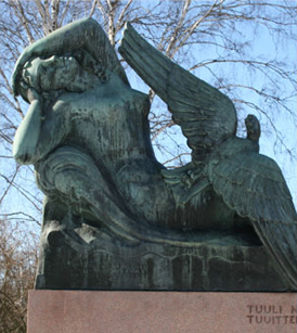 "Once upon a maid, the spirit girl, Luonnotar of fancy figure." Aarre Aaltonen’s Ilmatar and the duck is located in Sibelius park. In this strongly erotic sculpture the bird resembles a swan, rather than a duck bird. Aaltonen brings the ancient ”Leda and the swan”-motif into the realm of Kalevala imagery.
