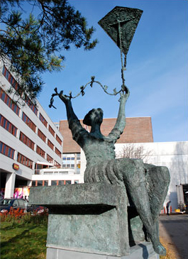 The bronze ”Ilmatar” by Kari Juva is one of Helsinki's relatively unknown public statues. It was completed in 1982, upon the request by the Commercial Finnish TV station, and it is located in a very remote place in the station compound in Ilmala. Fine figured ”Ilmatar” can be identified as a part of Kari Juva’s high-volume sculpture production, that can be found and appreciated in various public places in cities of Finland.